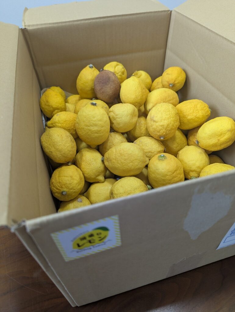 冬に収穫したレモンを熟成させています